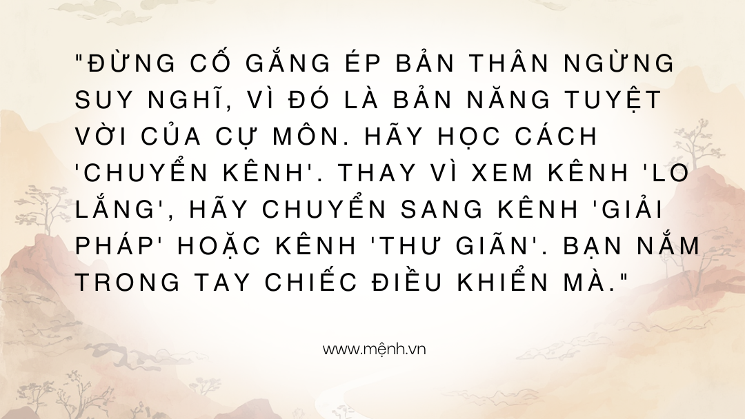 Nỗi lo âu của bạn thường không đến từ thực tại, mà đến từ việc "Lo xa". Bạn lo cho tương lai, lo những kịch bản chưa xảy ra. Đó là dấu hiệu của một người có trách nhiệm, nhưng cũng là gánh nặng vô hình.