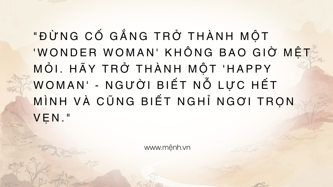 - Kết cục: Thần thái sang trọng, trẻ lâu, gia đình êm ấm vì người phụ nữ biết cách giữ lửa hạnh phúc từ chính bên trong mình.