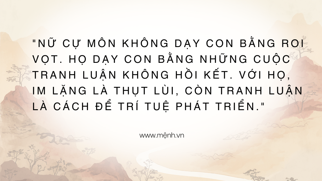 Đây là tư duy cực kỳ hiện đại. Bạn không muốn nuôi dạy một con cừu ngoan ngoãn. Bạn muốn con mình phải thông minh, sắc sảo và biết bảo vệ quan điểm.