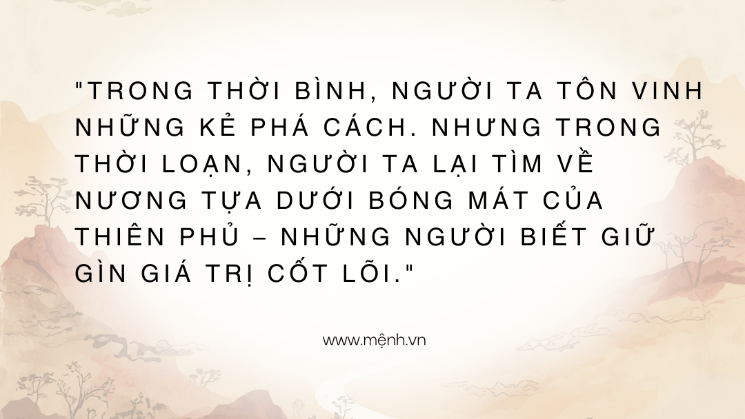 - Sự điềm tĩnh chữa lành: Giữa một xã hội đầy lo âu (Anxiety), sự bình thản, bao dung của Nữ Thiên Phủ là liều thuốc an thần cho gia đình và đồng nghiệp. Bạn là bến đỗ bình yên.